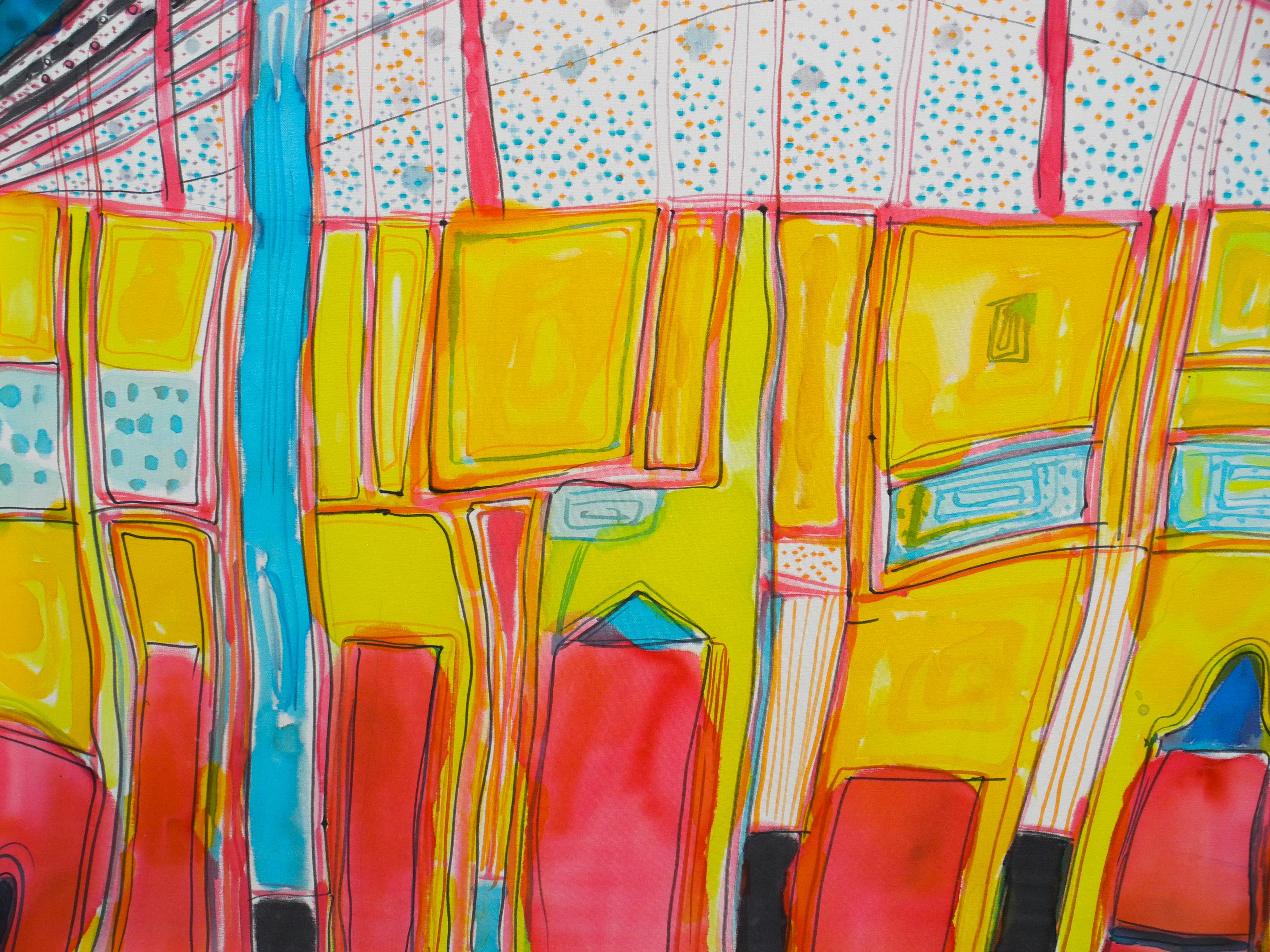 The innocence and colour of the children's drawing we see reflected in the decorative style that she applies in the applied arts. On glass she works in decorative stained glass. In textiles - batik, shibori and felt.